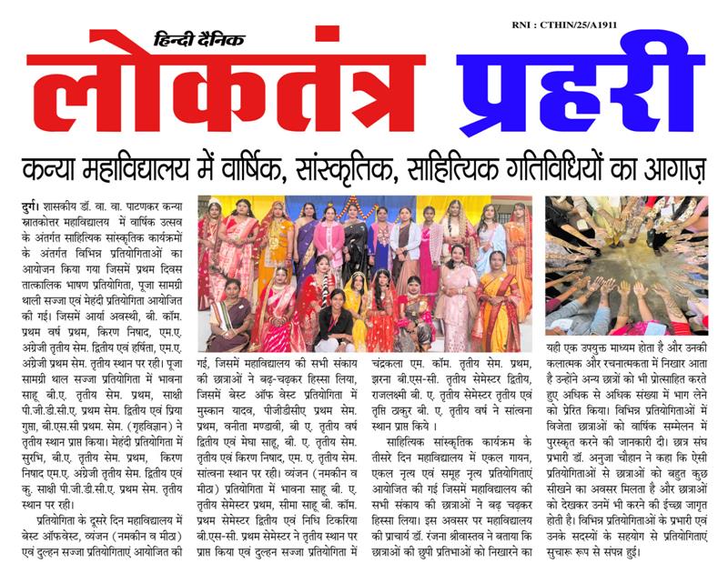 5 वी बार दुर्ग गर्ल्स कॉलेज बनी विजेता