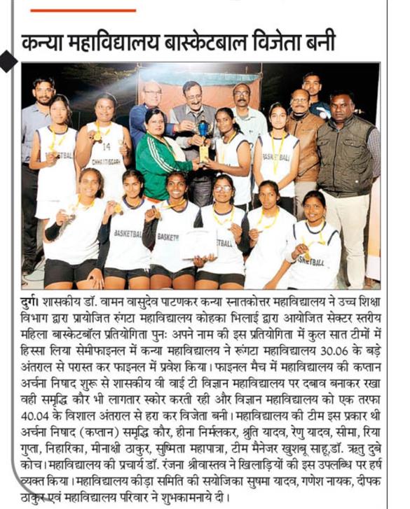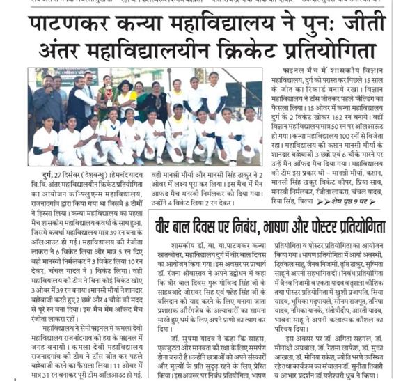 5 वी बार दुर्ग गर्ल्स कॉलेज बनी विजेता